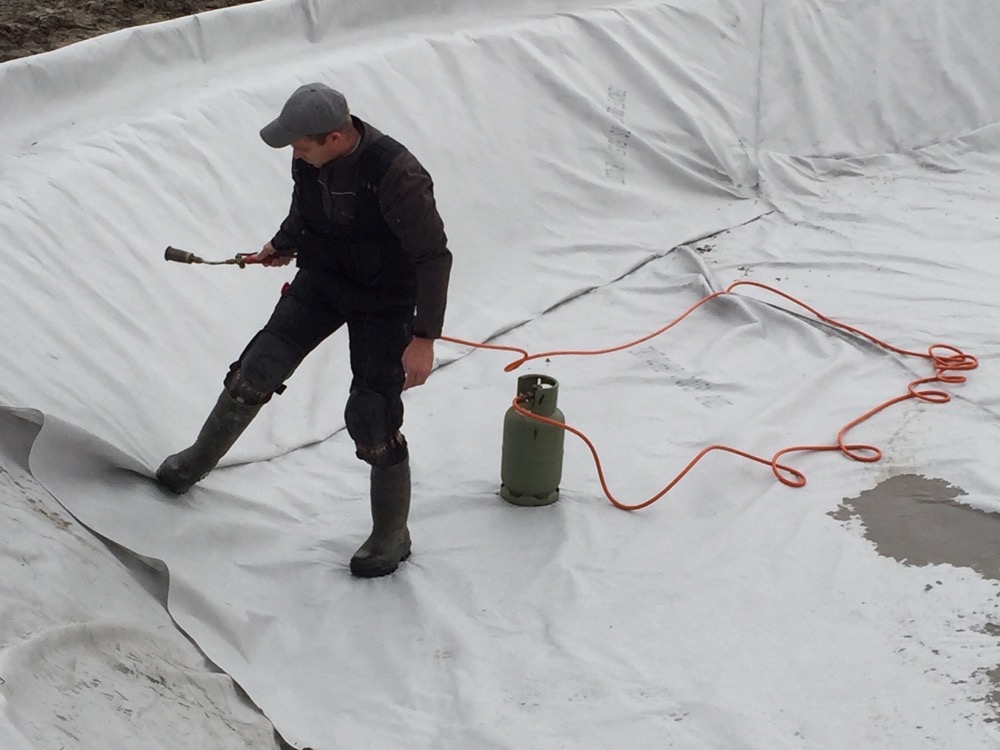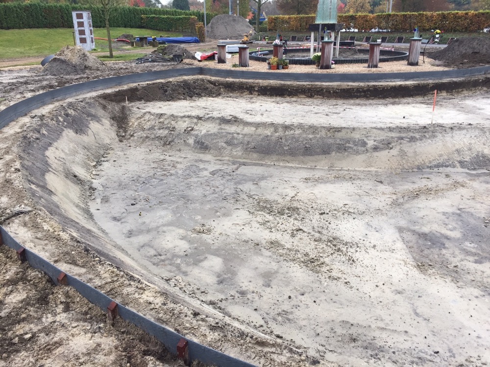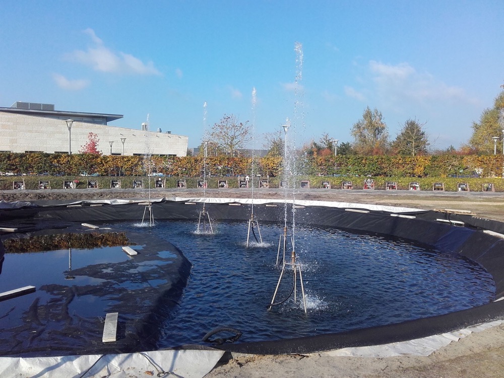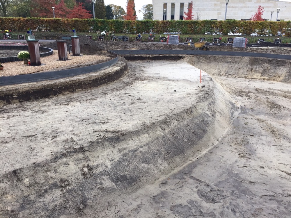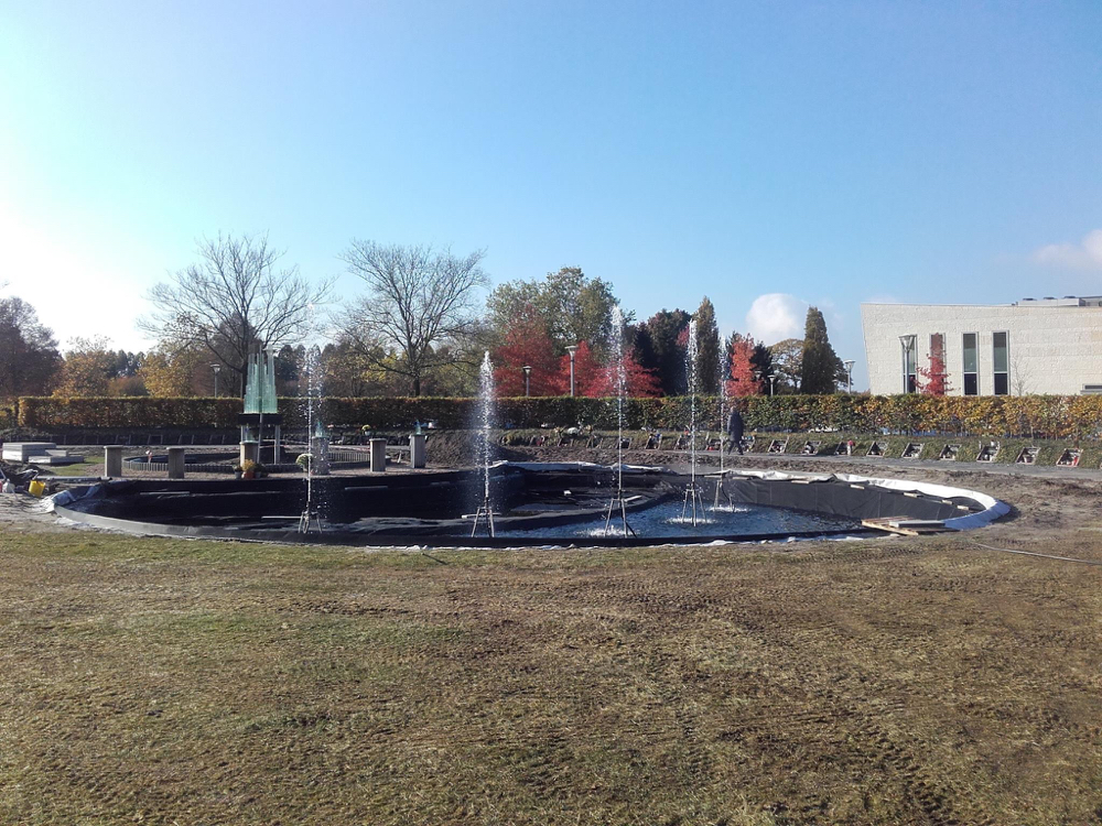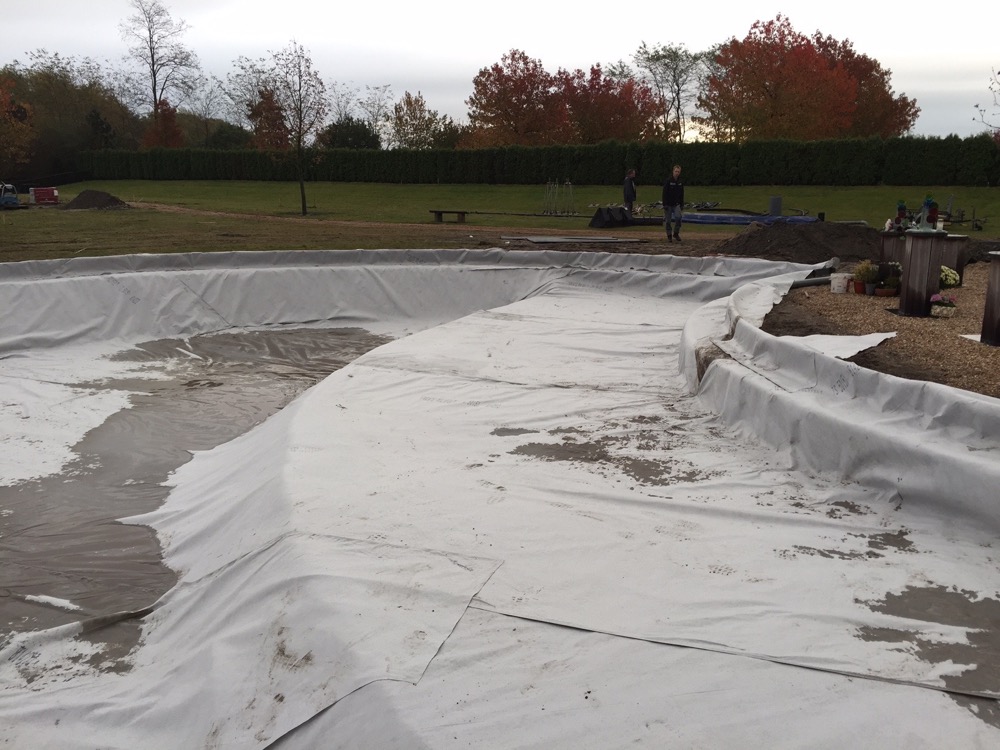 Renovatie van vijver bij het crematorium te Roosendaal: Membraan oppervlakte 500m2 en 400m3 inhoud.